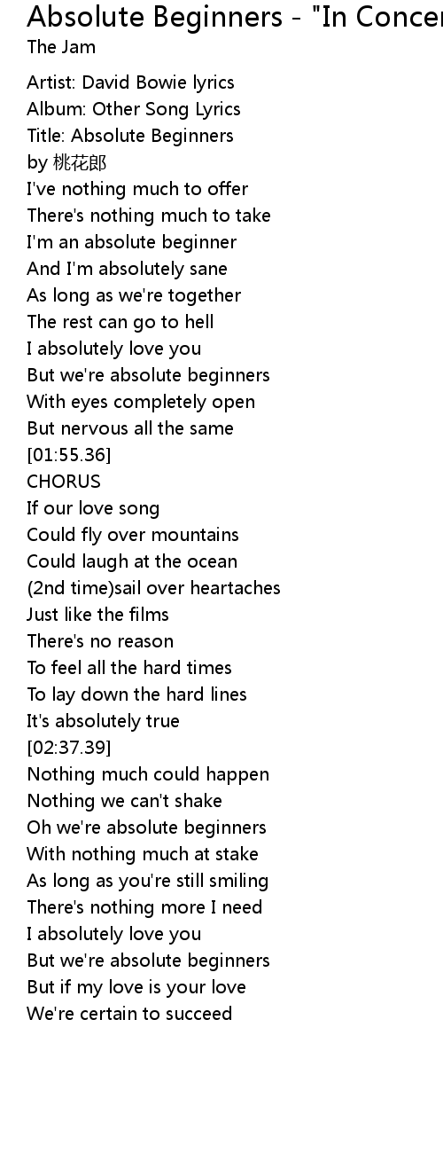 | Song | Absolute Beginners - "In Concert", Hippodrome, Golders Green, 1981 |