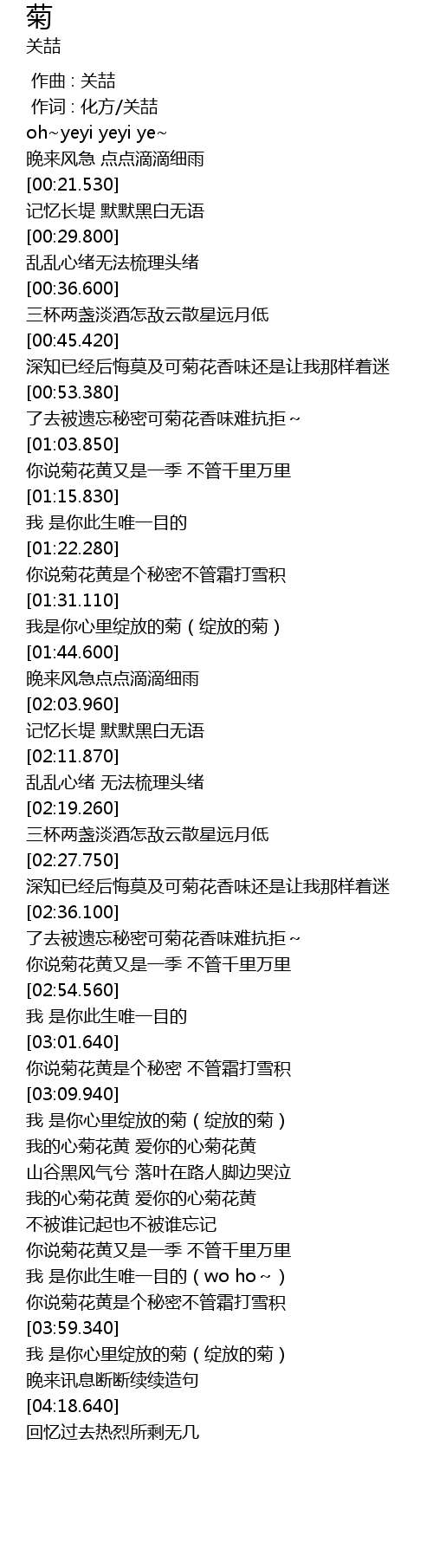 | [03:59.940] | 我 是你心里绽放的菊(绽放的菊) |