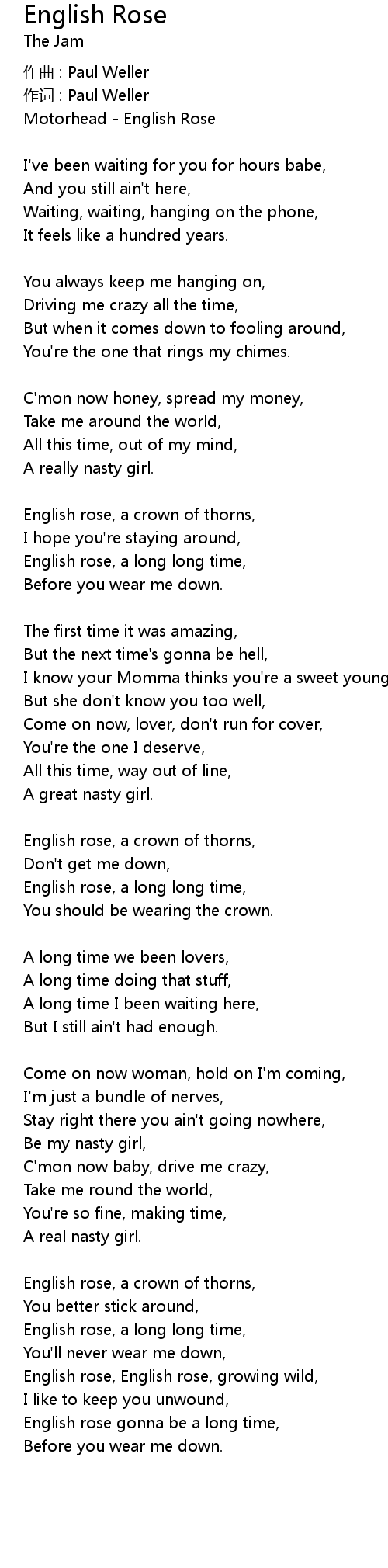 | English rose gonna be a long time, | |