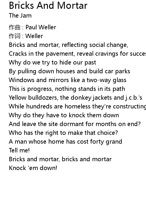 | Song | Bricks And Mortar |