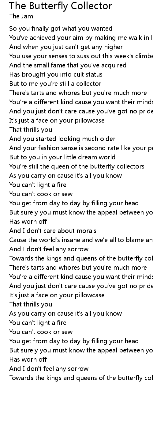 | [02:09.88] | You're still the queen of the butterfly collectors |