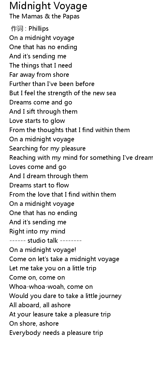 | [02:27.80] | Come on let' s take a midnight voyage |