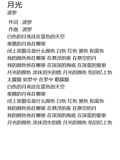 | [01:41.065] | yuè guāng de yán sè tú mǒ xiāo shī de lù yuè guāng de yán sè jǐ huí yì shàng sè |
