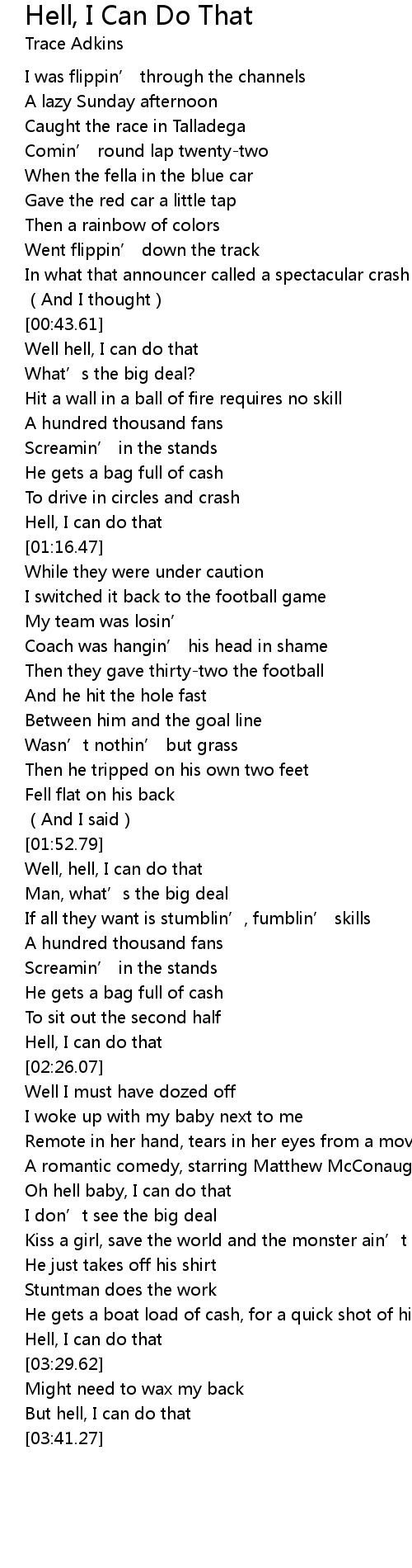 | Song | Hell, I Can Do That |