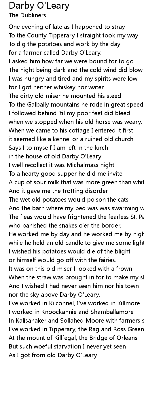 As I got from old Darby O'Leary |