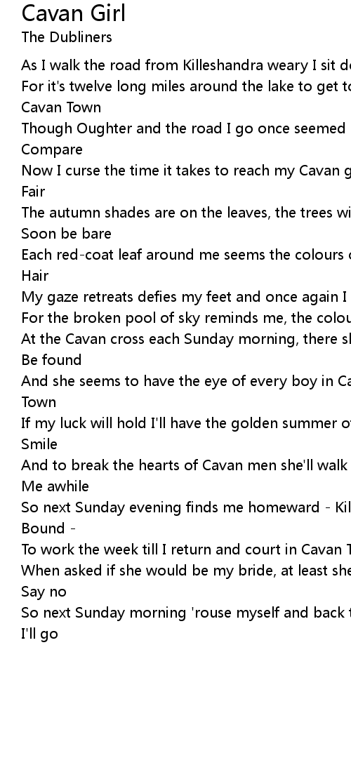 Now I curse the time it takes to reach my Cavan girl so |
