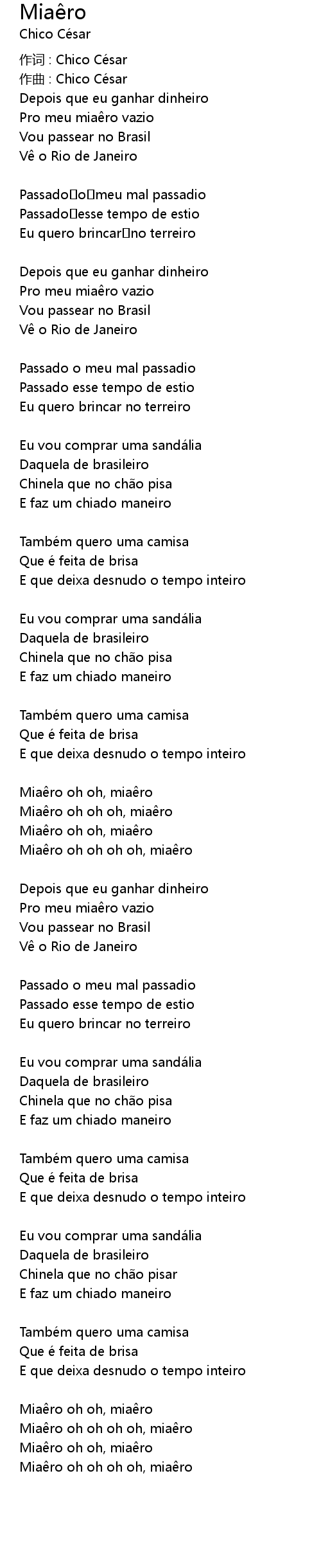 | 作词 : Chico César | |