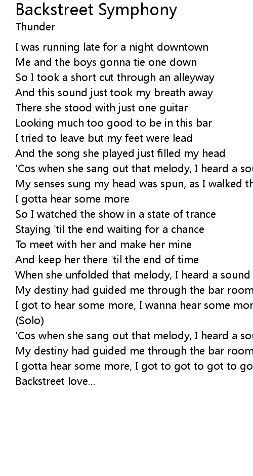 'Cos when she sang out that melody, I heard a sound like a backstreet symphony