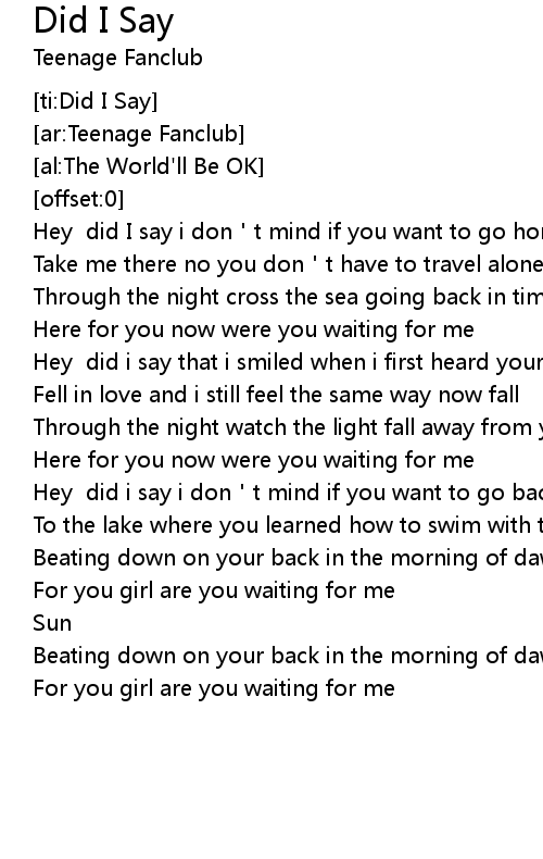 | [01:12.49] | Hey did i say i don t mind if you want to go back |