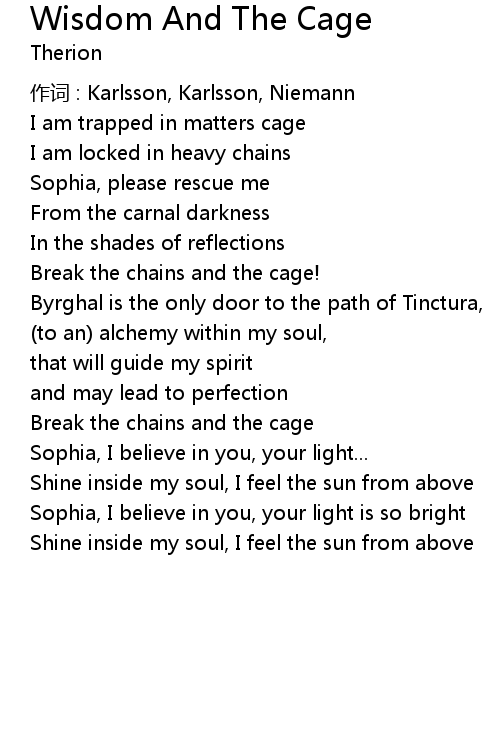 | Song | Wisdom And The Cage |