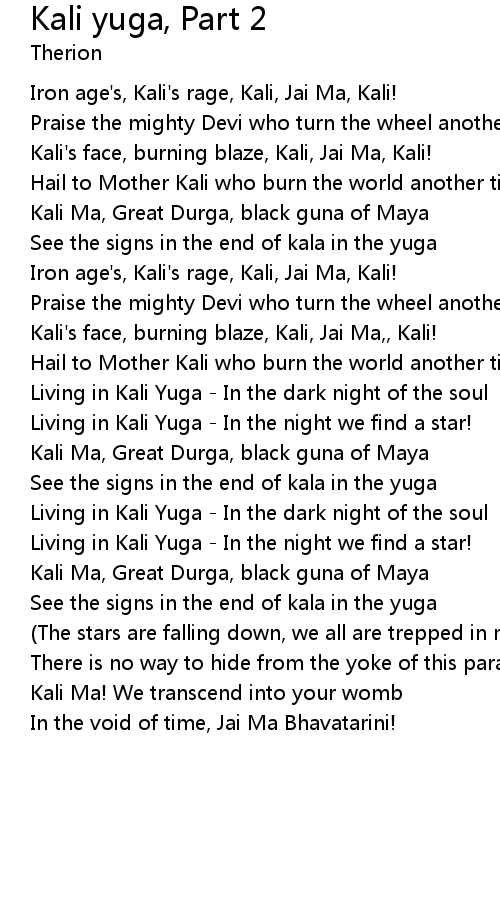 | Iron age's, Kali's rage, Kali, Jai Ma, Kali! | |