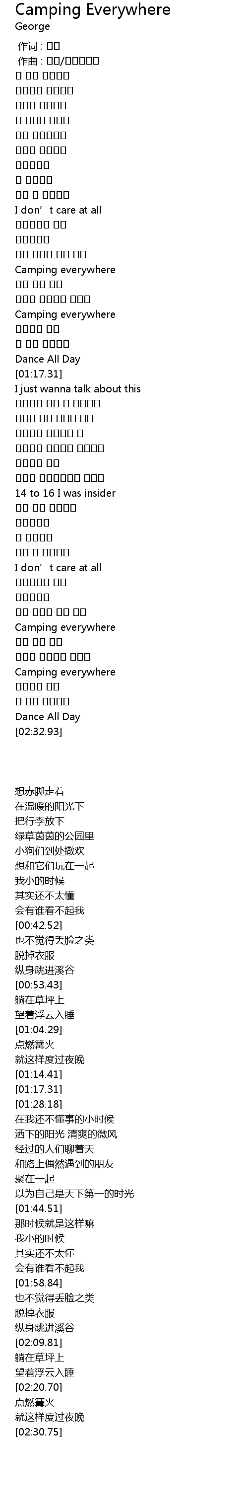 | [00:53.43] | Camping everywhere |