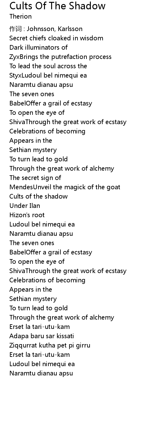 | Song | Cults Of The Shadow |