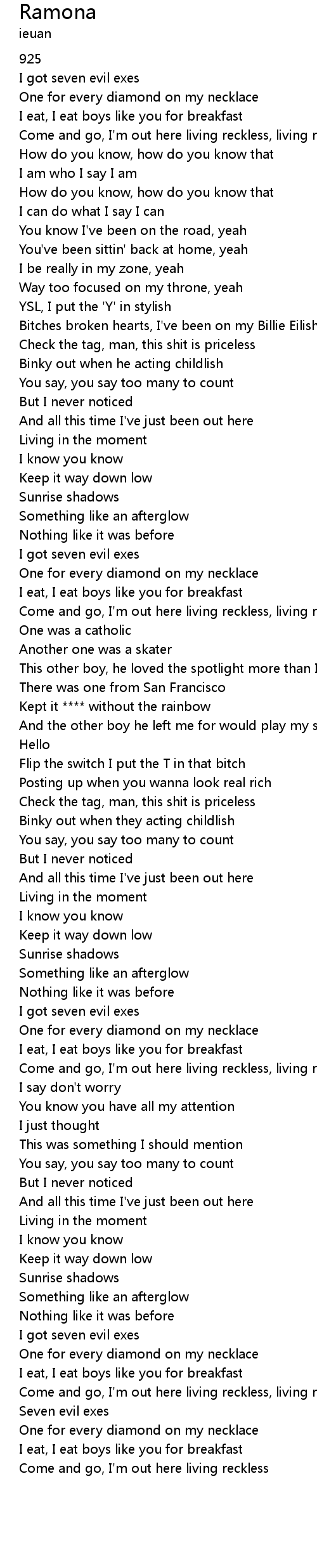 | [03:16.19] | Come and go, I'm out here living reckless, living reckless |