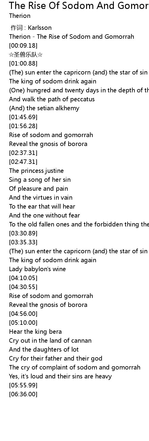 | [00:05.01] | Therion The Rise of Sodom and Gomorrah |