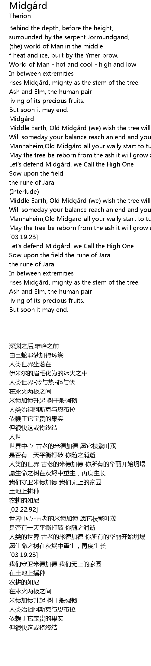 | [02:51.21] | Middle Earth, Old Midgård (we) wish the tree will burst into leaf! |
