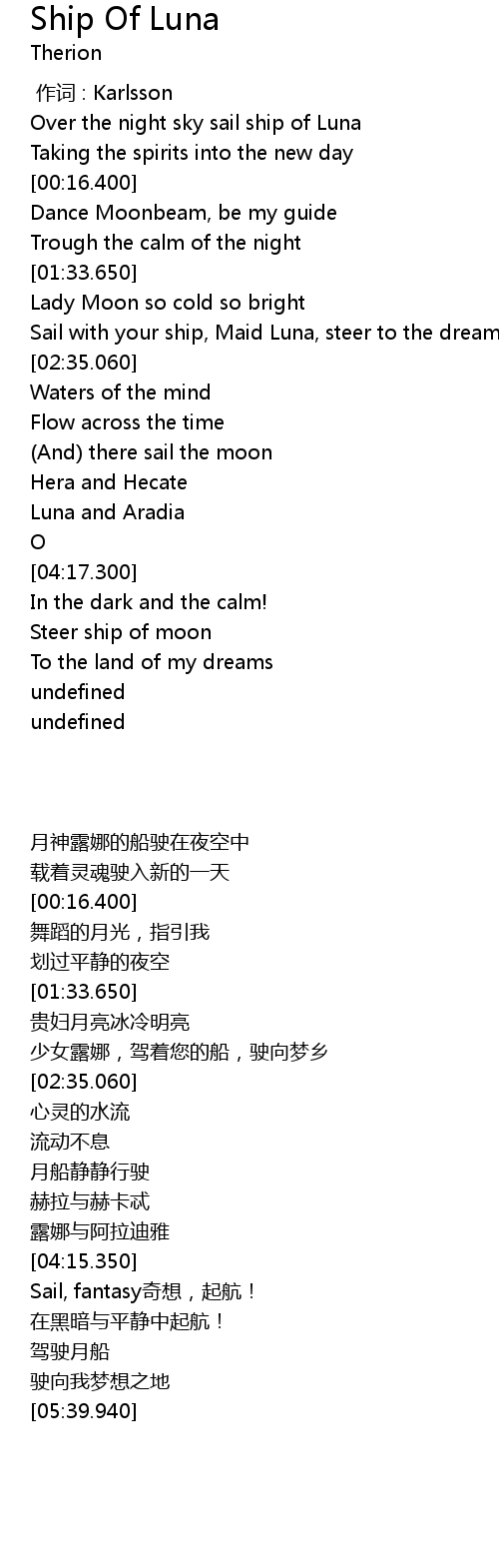| [02:03.990] | Sail with your ship, Maid Luna, steer to the dream |