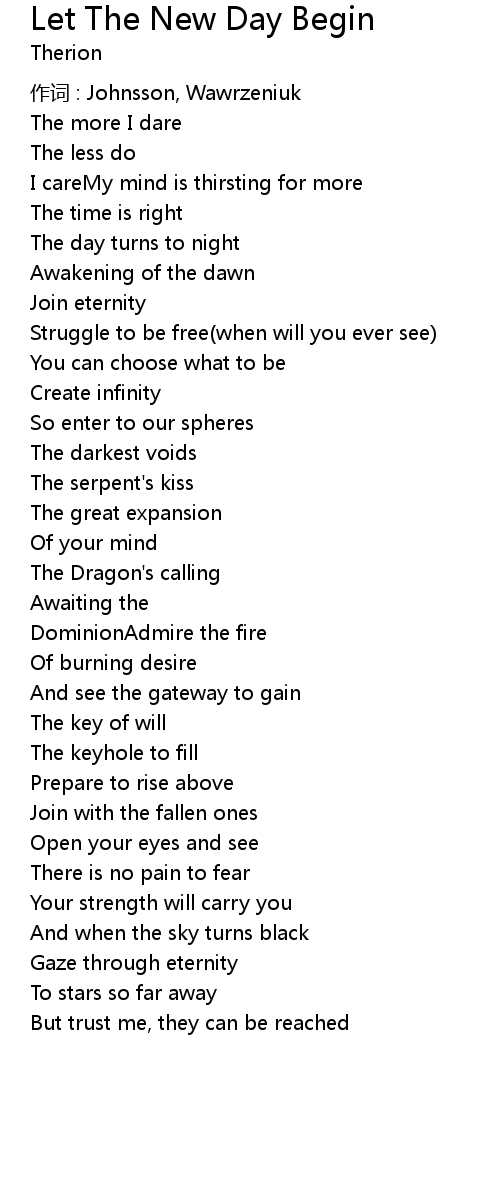 | Song | Let The New Day Begin |