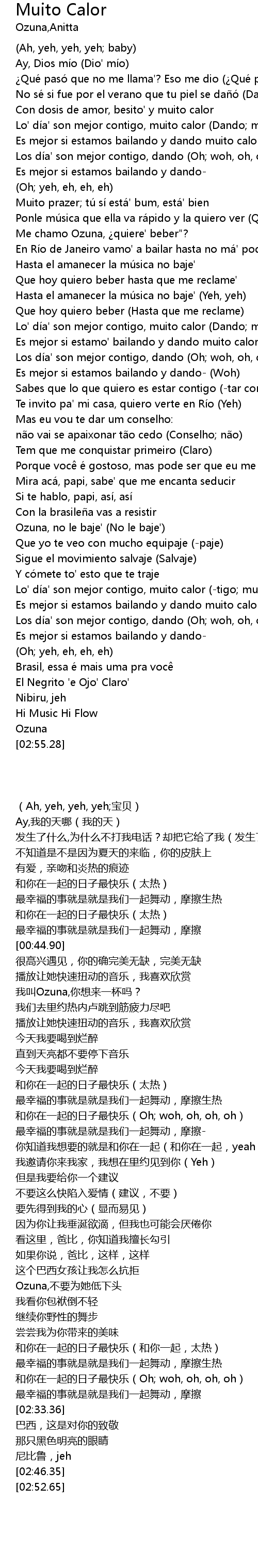 | [02:15.66] | Lo' dí a' son mejor contigo, muito calor tigo muito calor |