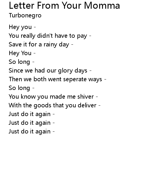 | Song | Letter From Your Momma |