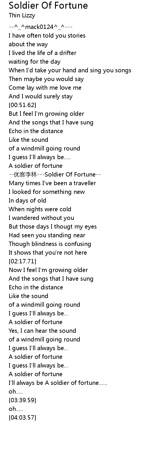 | [02:43.44] | A soldier of fortune |