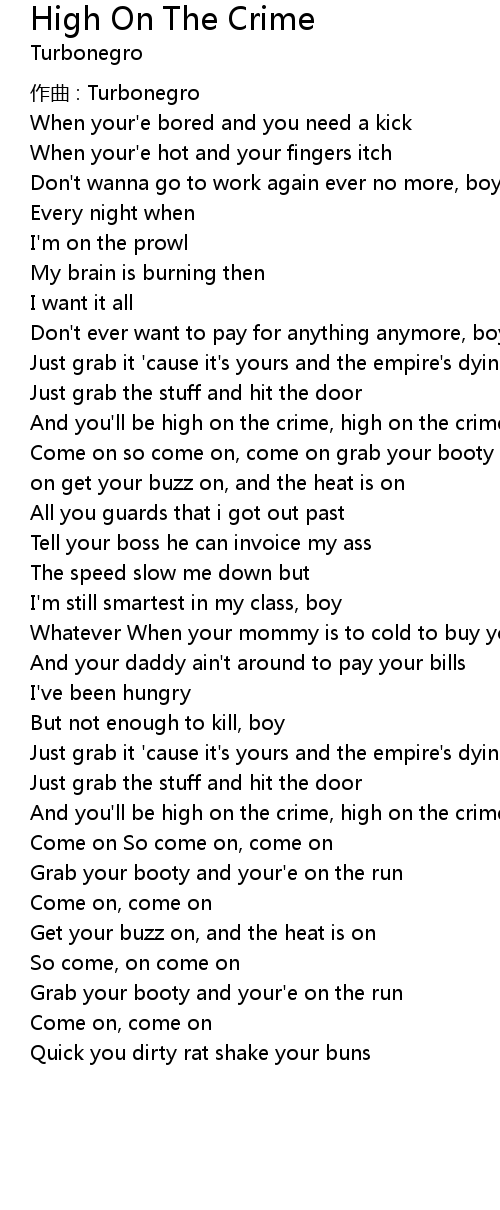 | Come on so come on, come on grab your booty and your'e on the run come on, come on get your buzz on, and the heat is on | |