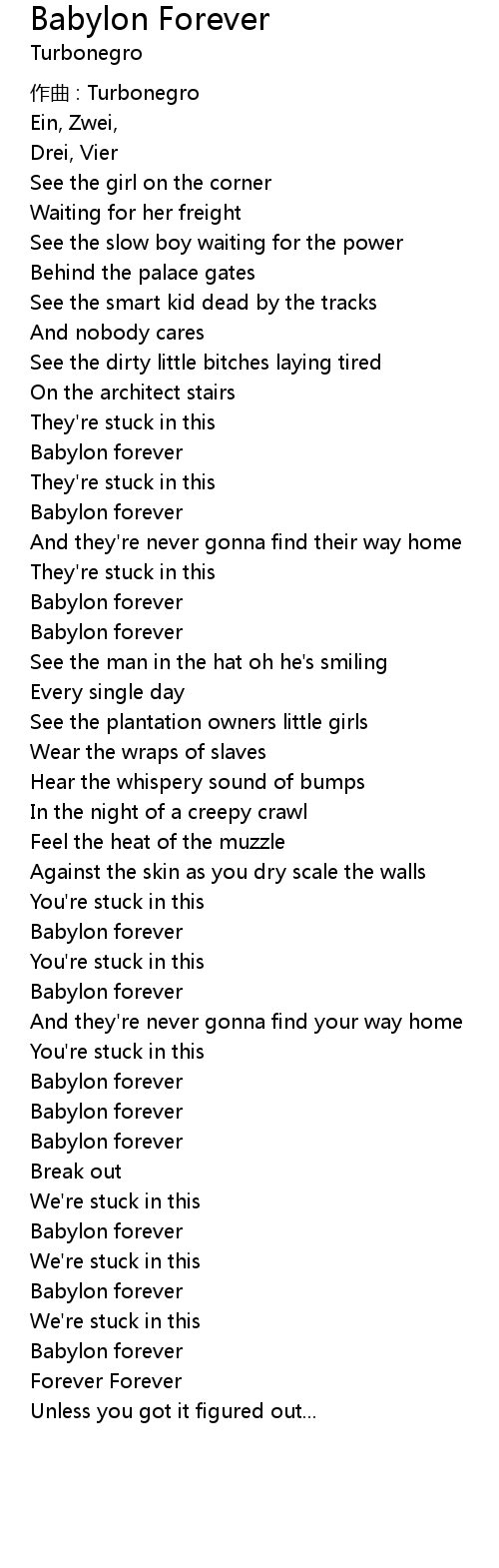 | Song | Babylon Forever |