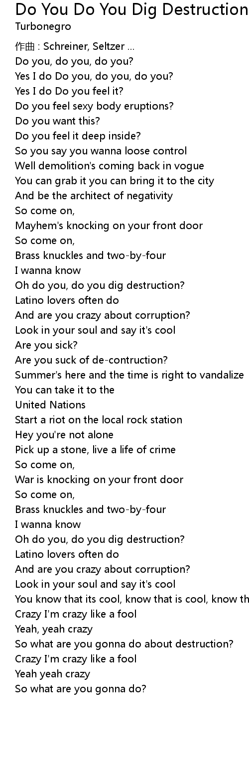 | Song | Do You Do You Dig Destruction |