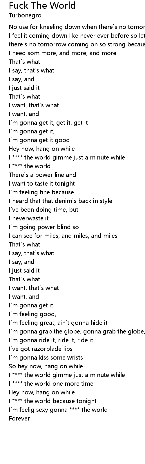 I feel it coming down like never ever before so let your tanks roll on when there`s no tomorrow coming on so strong because baby, you know |