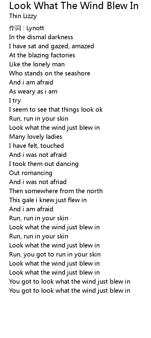 | Song | Look What The Wind Blew In |