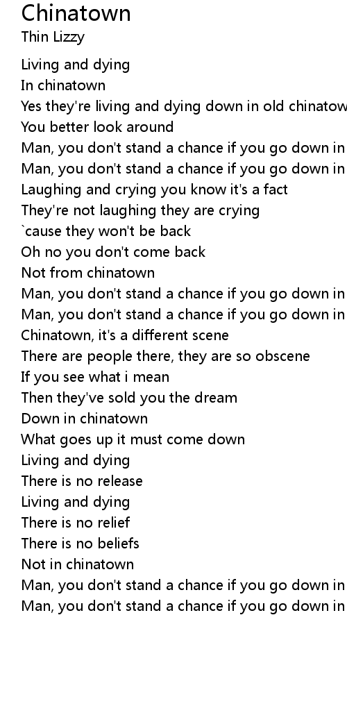Man, you don't stand a chance if you go down in chinatown |
