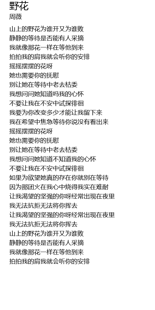 | [00:34.24] | 山上的野花为谁开又为谁败 |