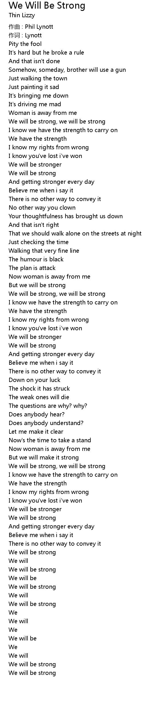 | We will be strong, we will be strong | |
