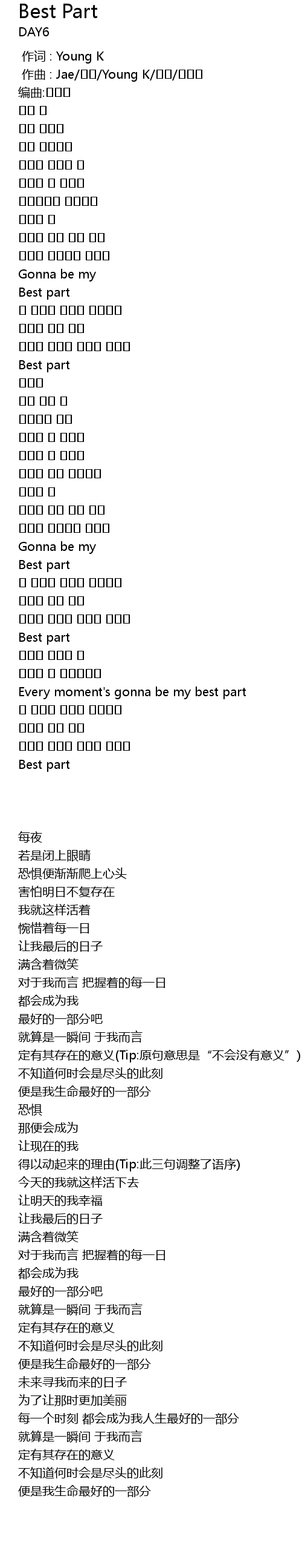 | [00:00.95] | 作曲 : Jae/성진/Young K/원필/홍지상 |