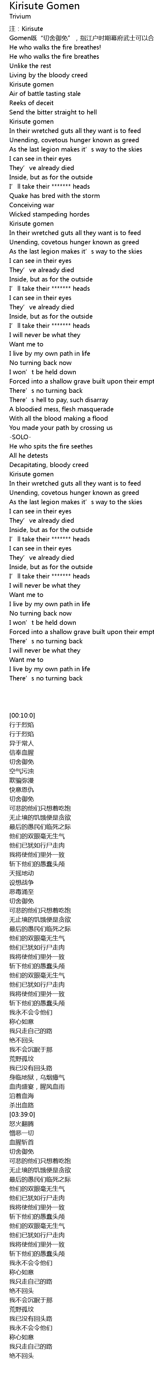 | [00:10:0] | 注:Kirisute Gomen既“切舍御免”,指江户时期幕府武士可以合法斩杀下人、平民的特权 |