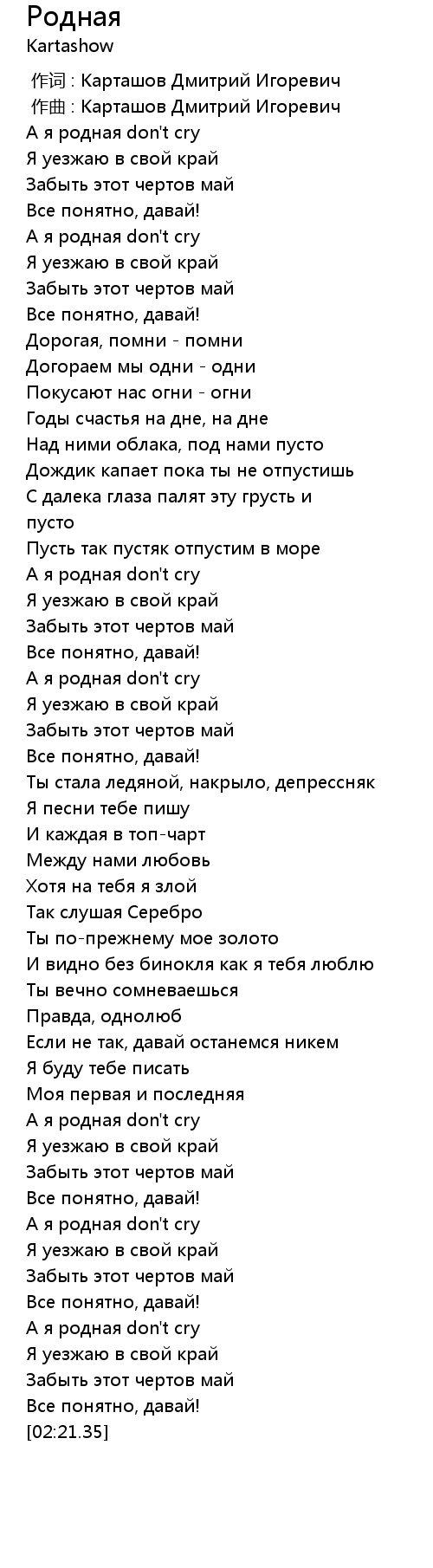 А я родная don't cry |