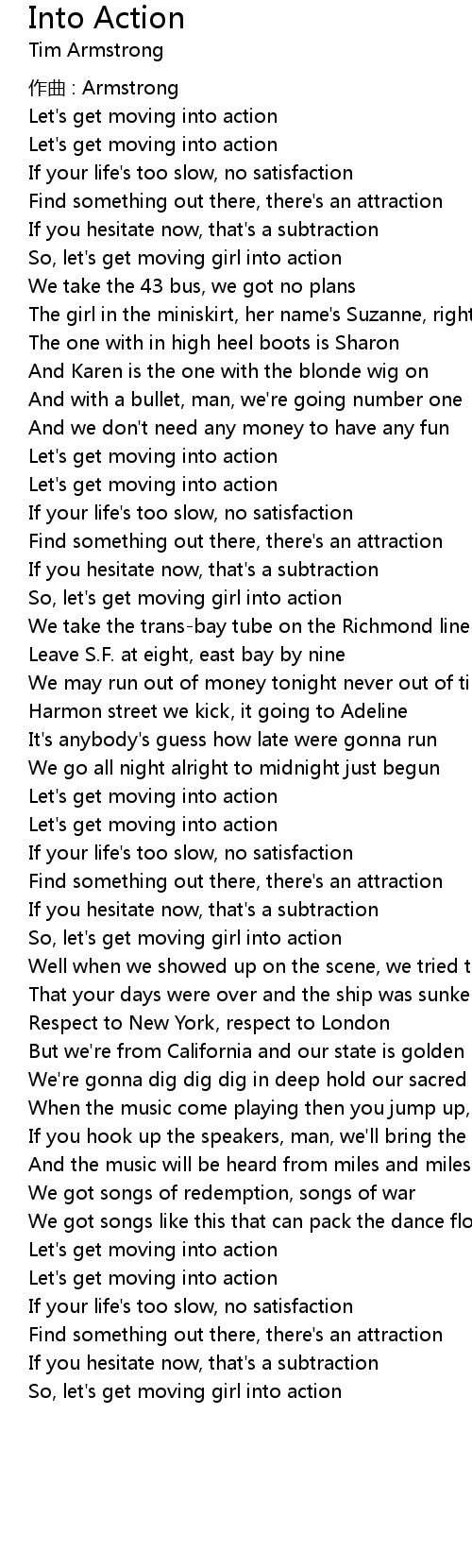 | Let' s get moving into action | |