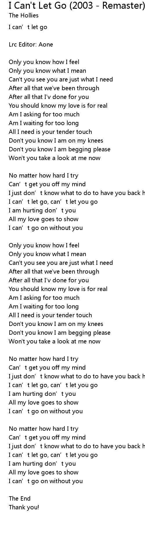 | I can' t let go, can' t let you go | |