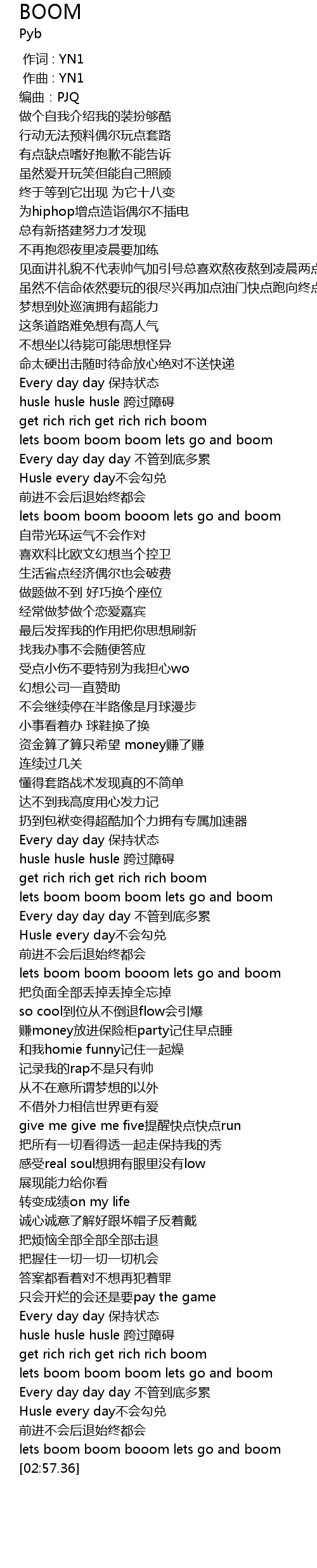| [00:59.15] | lets boom boom boom lets go and boom |