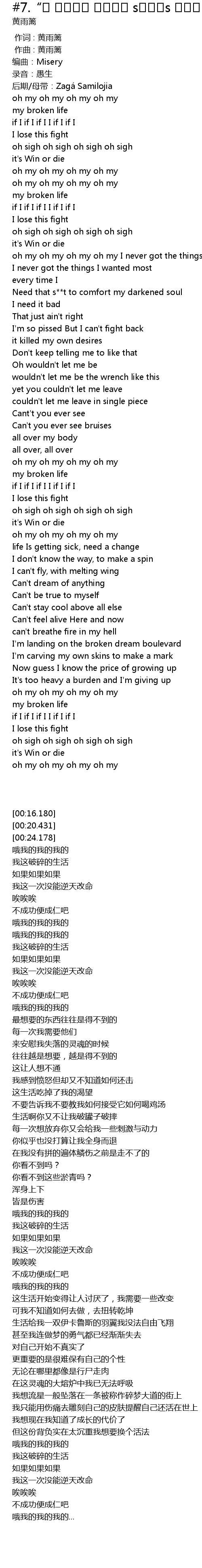 | [00:16.180] | bian qu: Misery |