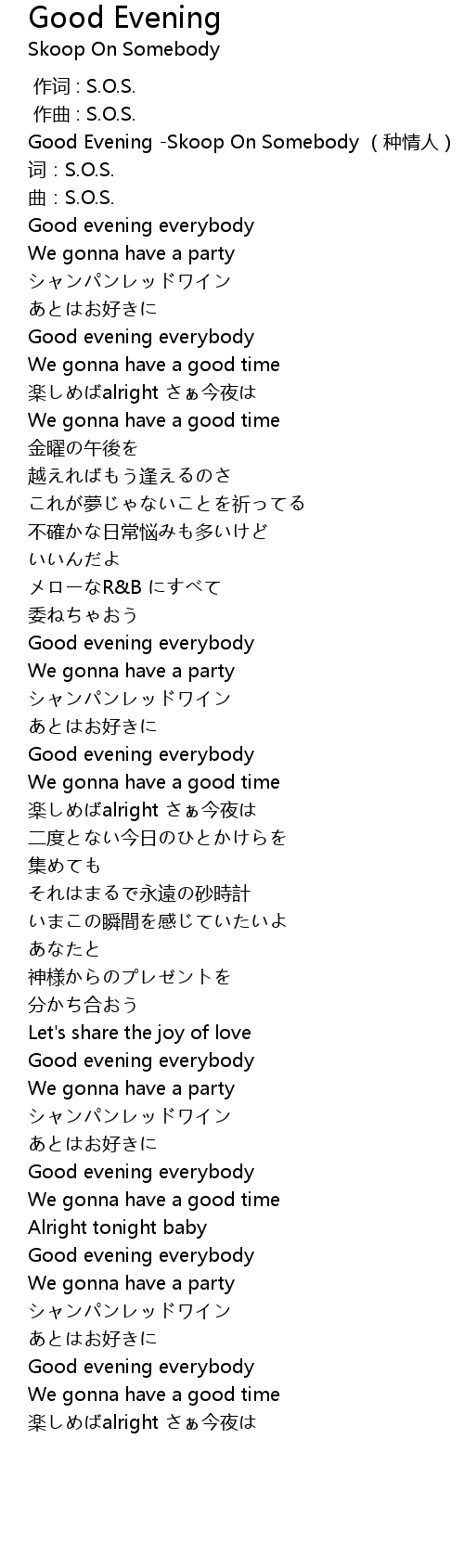 | [00:00.00] | Good Evening Skoop On Somebody zhǒng qíng rén |