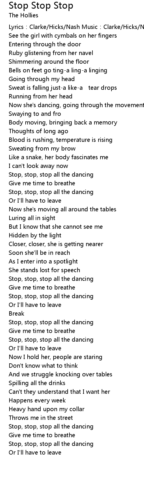 | Stop, stop, stop all the dancing | |
