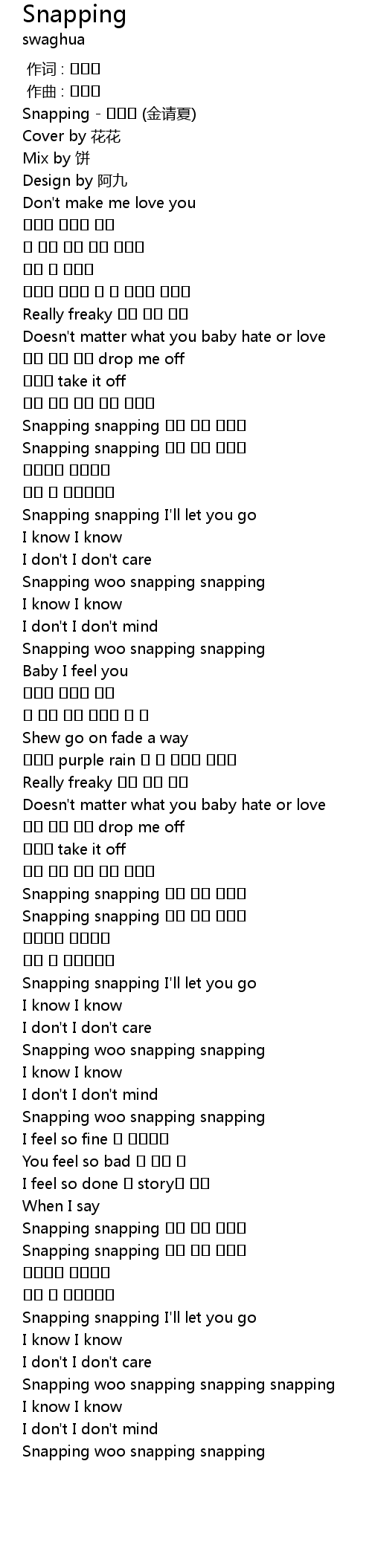 | [00:59.654] | Snapping snapping I' ll let you go |