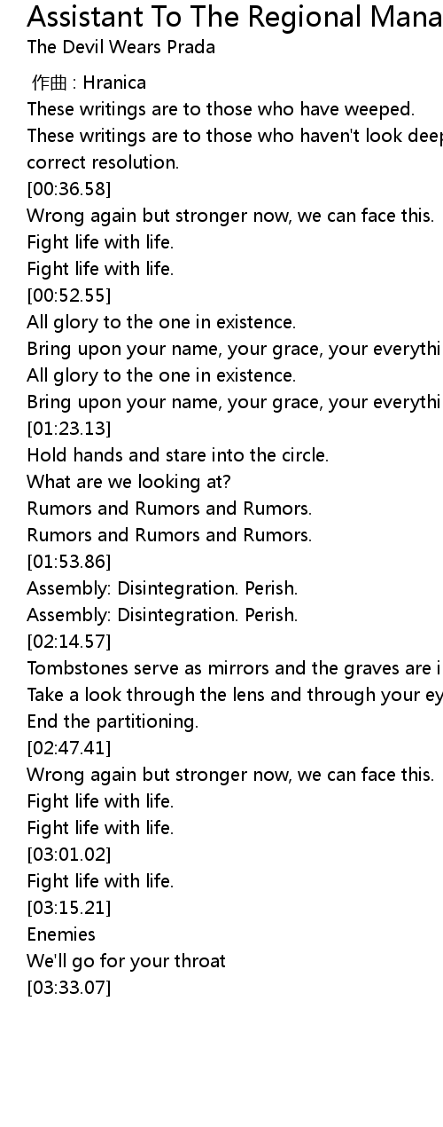 | [01:54.68] | Assembly: Disintegration. Perish. |