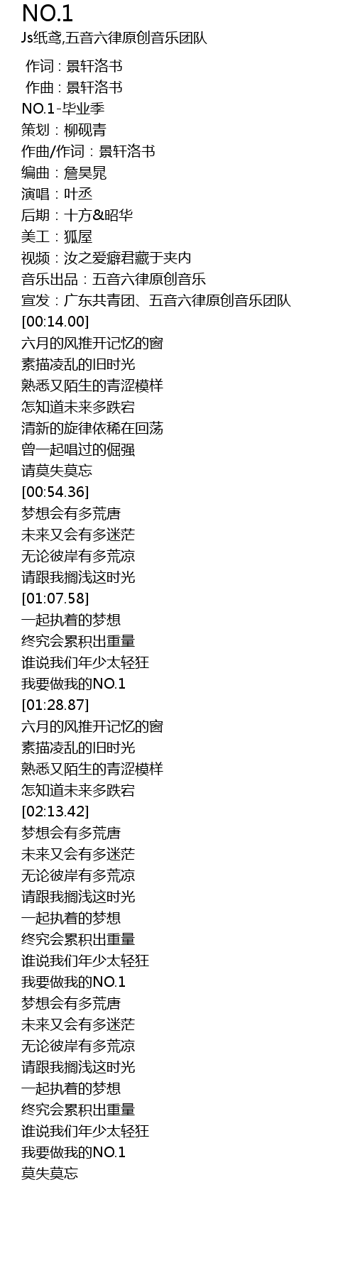| [00:13.44] | 宣发:广东共青团、五音六律原创音乐团队 |