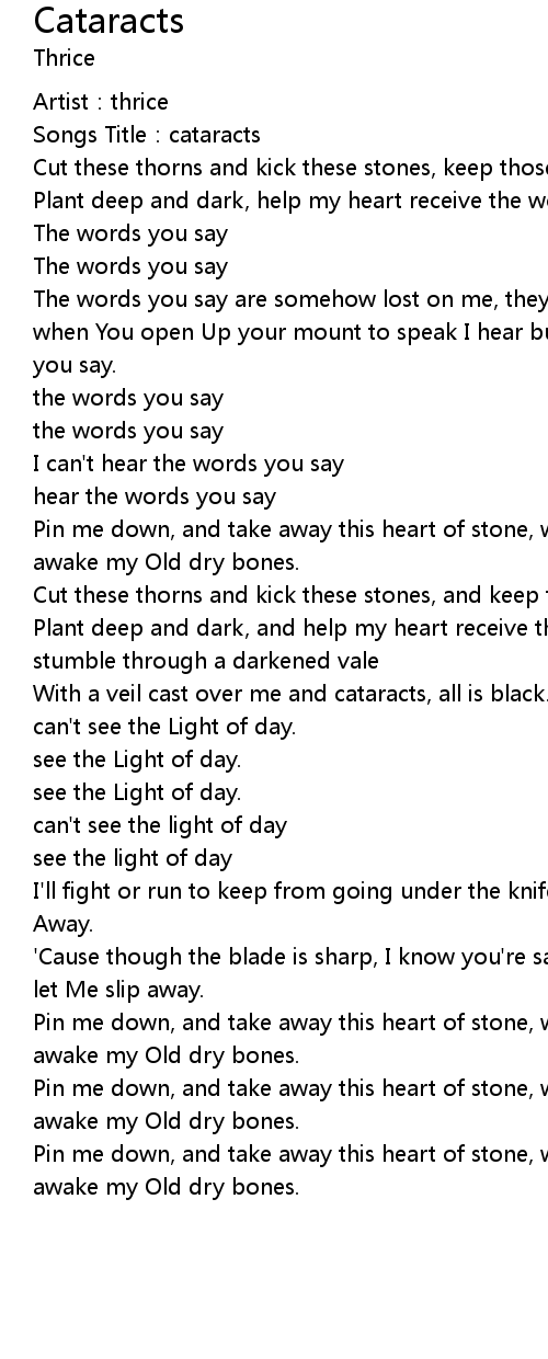 | Song | Cataracts |