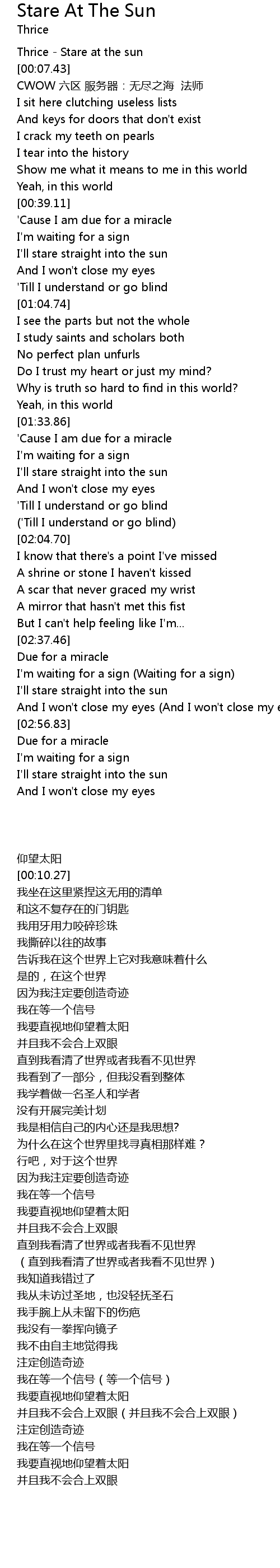 | [00:00.52] | Thrice Stare at the sun |