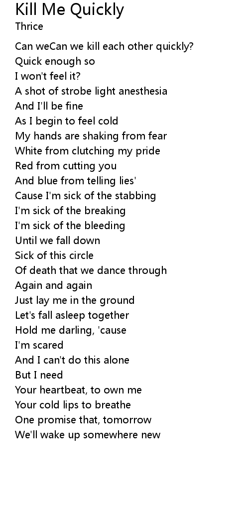 Can weCan we kill each other quickly? |