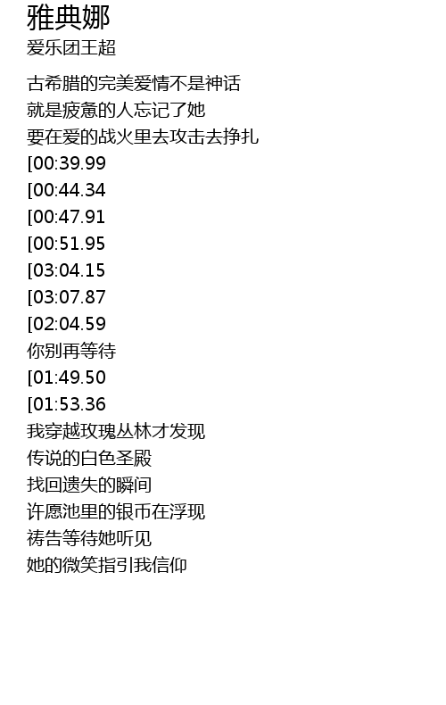 | [01:35.49][00:47.91] | 穿越时空寻找神秘的雅典娜 |
