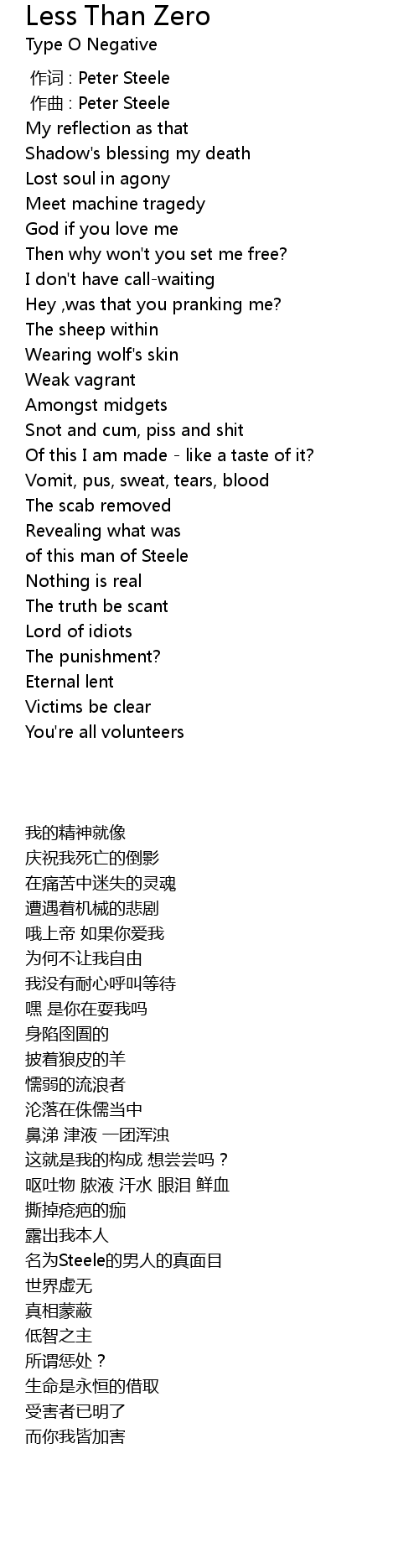 | [00:01.000] | zuò qǔ : Peter Steele |